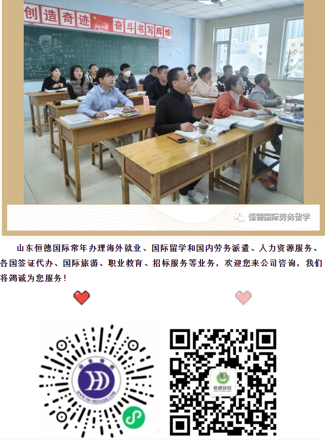 版權所有:山東恒德國際經濟技術合作有限公司 威海恒德職業培訓學校 地址:威海市高區火炬路153號-A  免費熱線:4006150009